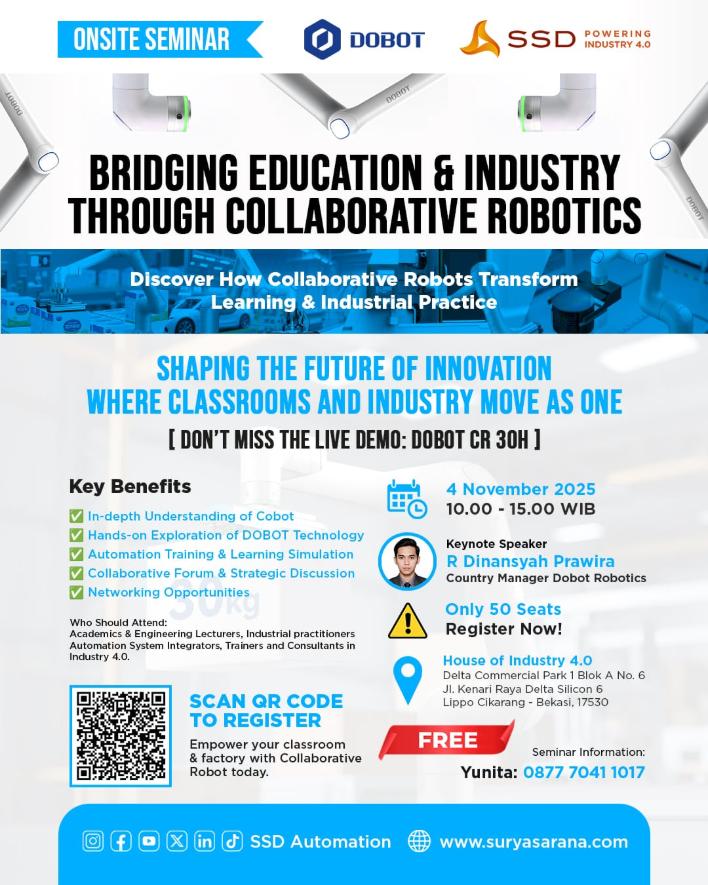 Surya Sarana Dinamika (SSD) in collaboration with DOBOT proudly presents an exclusive onsite seminar titled: